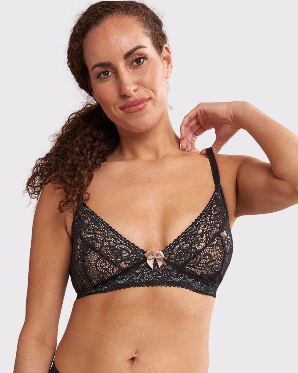 This wirefree pocketed bra is dressed up with a layer of lace so you can recover in comfort and style.