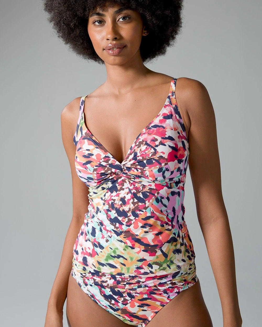 Don’t get it twisted, this tankini is supportive and sexy. WIth a bust that supports D-cup busts, you can swim carefree in this cool style.