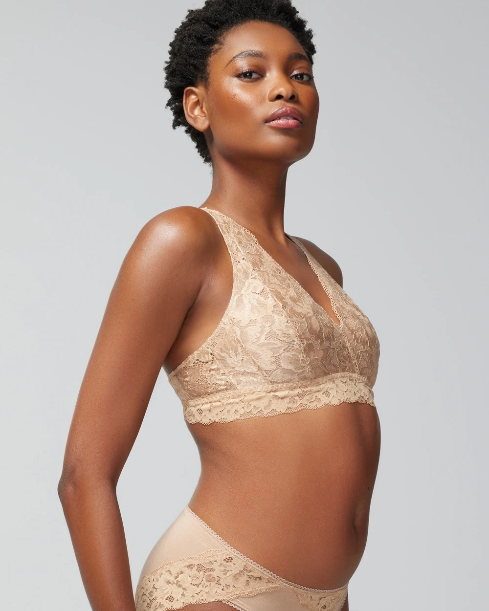 Our Embraceable® Signature Lace Back Detail Bralette is comfortable, versatile, and pretty all at the same time. Don’t be afraid to let the bra peek through—it’s too stunning not to show off. You’ll love the full coverage style and the impressive support from this bralette design. Pair your new bra with one of our Embraceable Super Soft Signature Lace panties for a lovely lace combo.