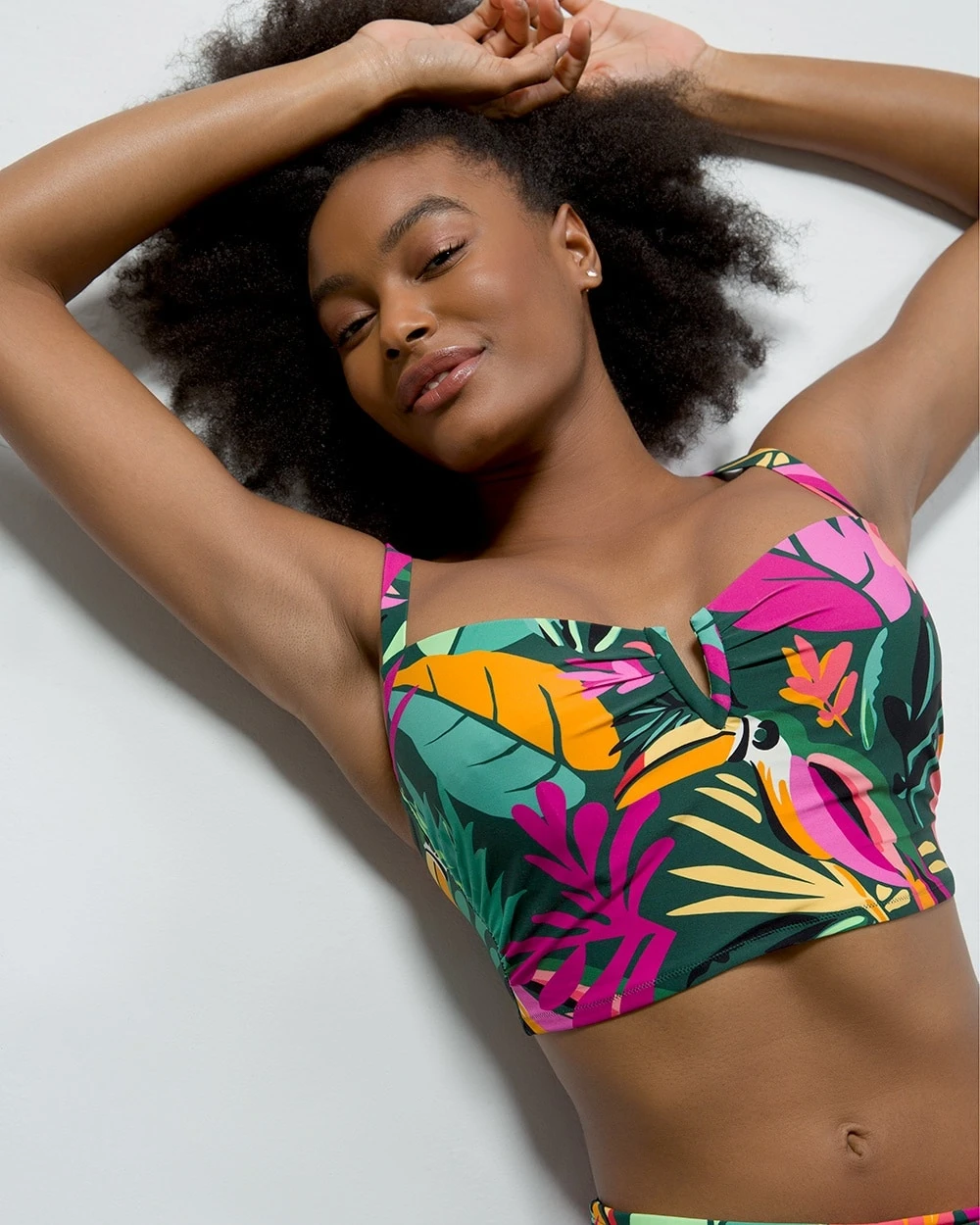 V is for victory and this v-wire cropped bikini top is definitely a winner. In a sporty new silouhette, the cropped bikini is the perfect partner to our rouched high-waist bikini bottom. It flatters your shape with strategically placed rouching down the sides and at the V-wire accent. Adjustable straps ensure a perfect fit.